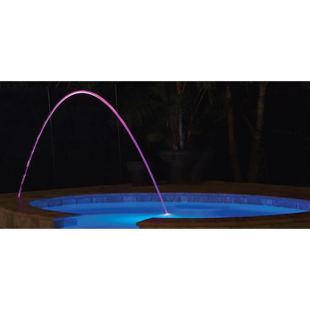 - For a more enriched nighttime experience, a solenoid is integrated into the LED system to add a bright spot of light as it follows the arc into the pool or spa.