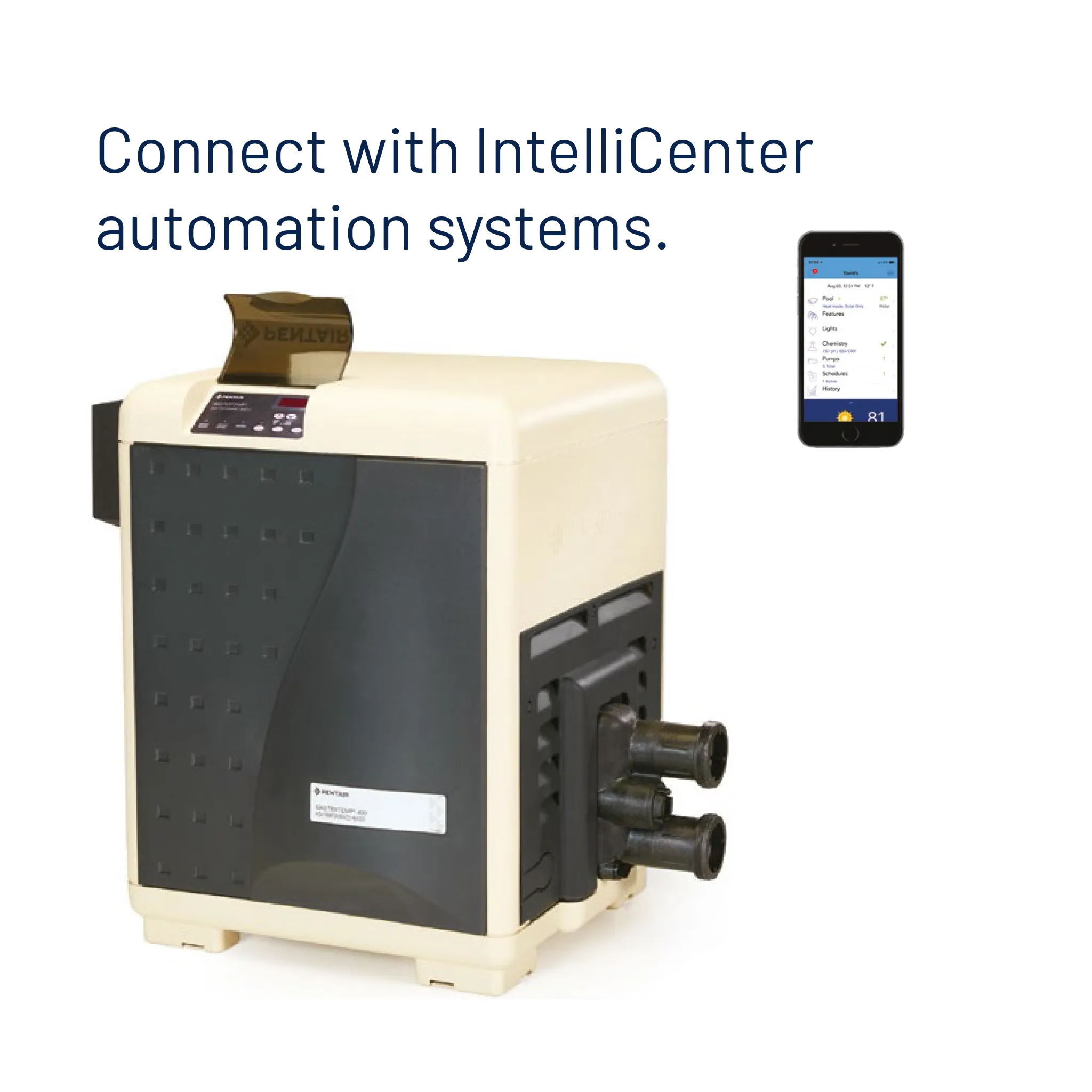 The compact design and super-quiet operation won’t intrude on your poolside leisure time. Heavy-duty (HD) unit with cupro-nickel exchanger stands up to the harshest of applications, like low pH, high flow or heavy use.