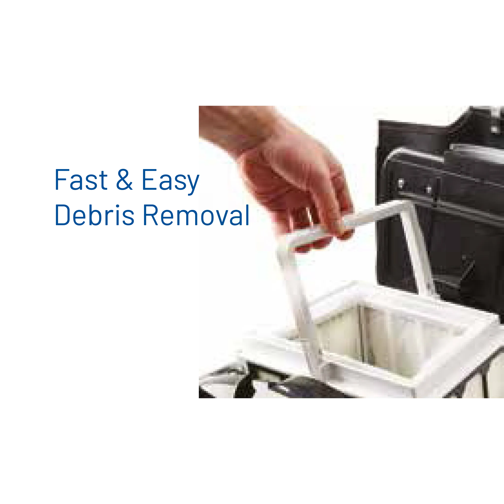 Pool walls and floor get deep-scrubbing and powerful vacuuming action, all the way up to the tile line. Prowler 920 comes with separate mesh baskets made for either large or fine debris, to customize the filtration level or do lightning-fast swap out for touchups.