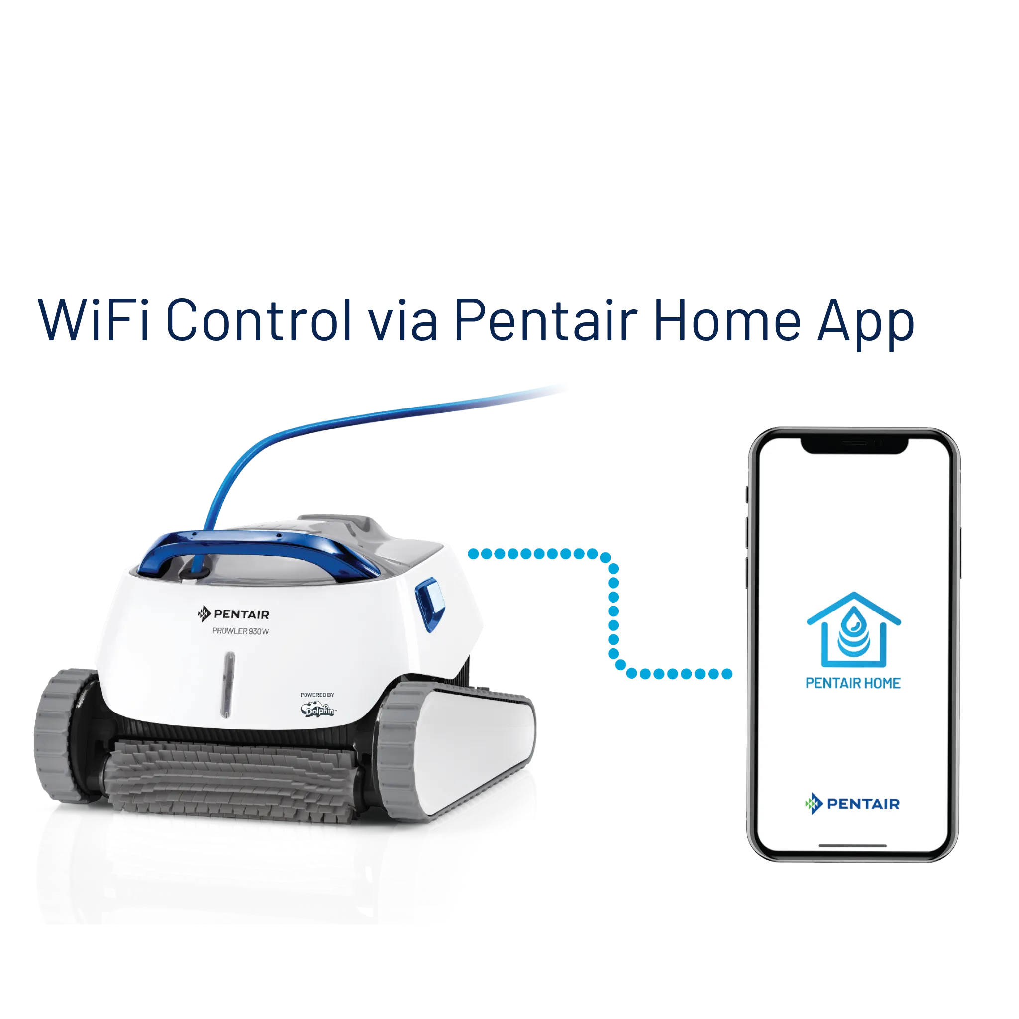 The Prowler 930W Robotic Cleaner has all the easy, drop-in-and-go intelligence of all the Prowler family. But with the 930W’s WiFi connectivity, all you need is the Pentair Home app to make pool cleaning truly hands-off and effortless — even by robot standards. Whether you need time to get ready for the kids’ pool party or simply want to touch up a tough spot before bed so your morning dip is glistening.
